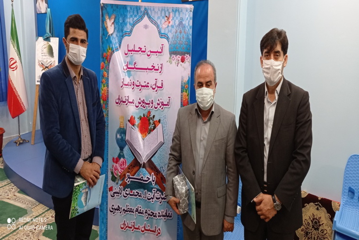 در این مراسم از تعدادی دانشآموزان و فرهنگیان به نمایندگی از نخبگان سه منشور نورانی قرآن، عترت و نماز آموزش و پرورش مازندران در سال تحصیلی ۹۹-۹۸ با اهدای لوح یادبود تقدیر شد.