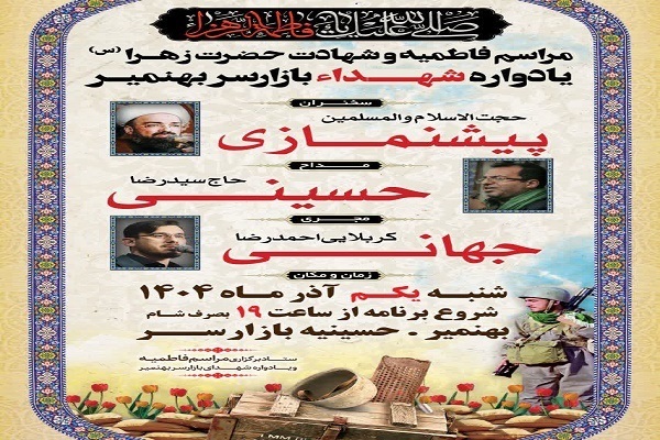 به گزارش ایکنا از مازندران، از سوی ستاد برگزاری آیین فاطمیه و یادواره شهدای بازارسر شهر بهنمیر، همزمان با فرا رسیدن ایام سوگ حضرت زهرا(س)، محفلی برای تجلیل از شهدای بازارسر، شهدای خوشنام، شهدای مدافع حرم، شهدای اقتدار و بزرگداشت حجتالاسلام درزیان امام جمعه فقید بهنمیر در حسینیه بازارسر برگزار میشود.